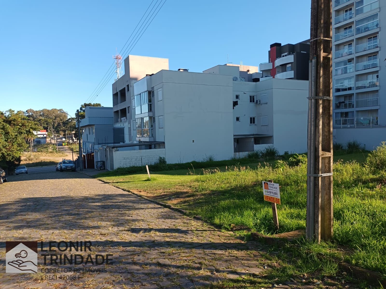 Leonir Trindade Imóveis, VENDE, ÓTIMO TERRENO, plano, em rua com calçamento, lugar tranquilo para se morar, já definido construção nos fundos, frente Leste, perto de Mercado Andreazza e dos Pavilhões da Festa da Uva. Como é terreno de meio e o vizinho do lado também vende, é ideal para uma Construtora edificar prédio de 12 andares ou mais.
